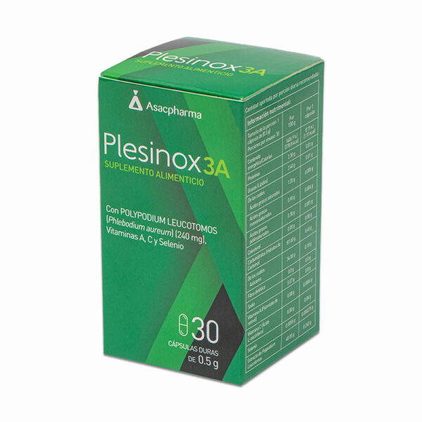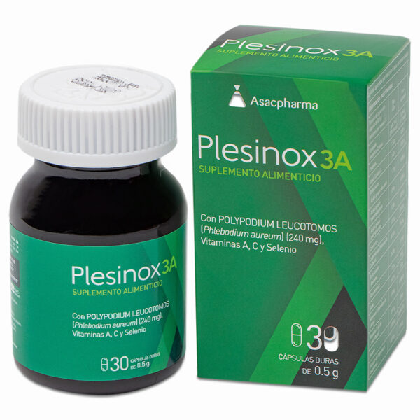 Suplemento alimenticio con extracto de Polypodium leucotomos, Vitamina A, C y selenio.