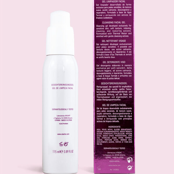 Gel limpiador de textura suave, de acción calmante, descongestiva y reparadora, formulado a base de agua termal y enriquecido con activos de limpieza cuidadosos, que respetan al máximo la integridad de la piel sensible.